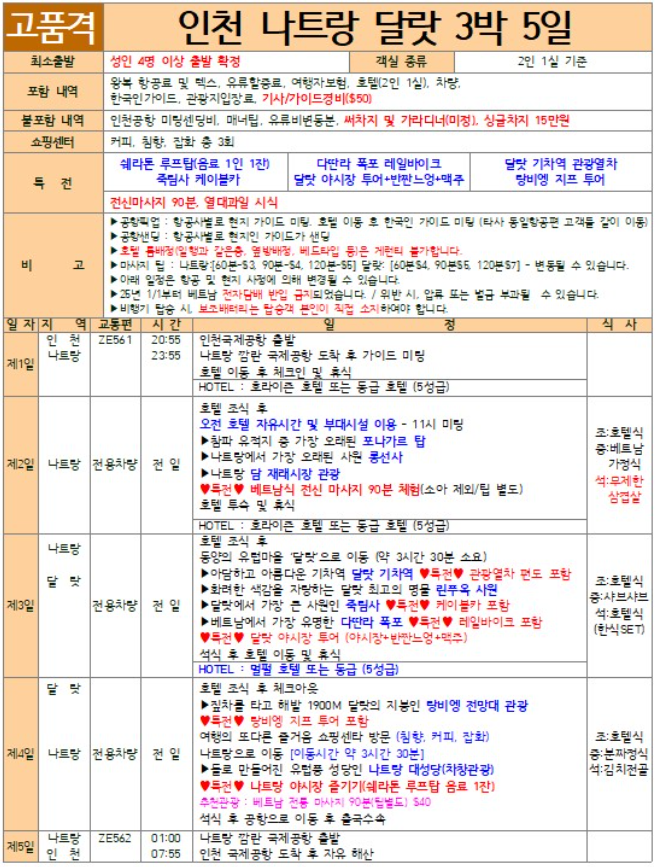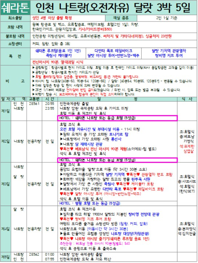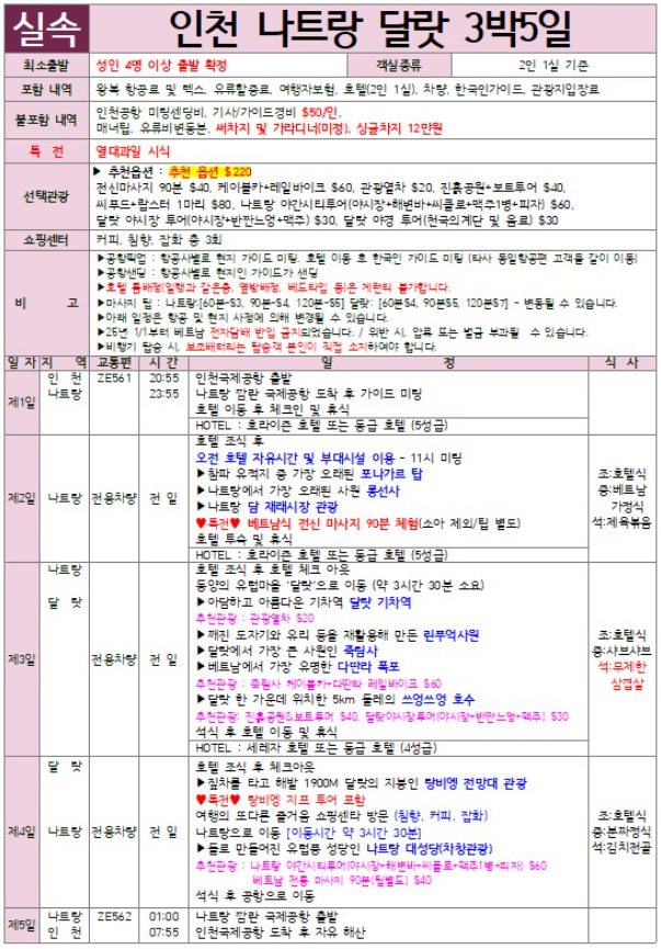 여행 일정: 나트랑 2박 + 달랏 1박 (3박 5일 기준)