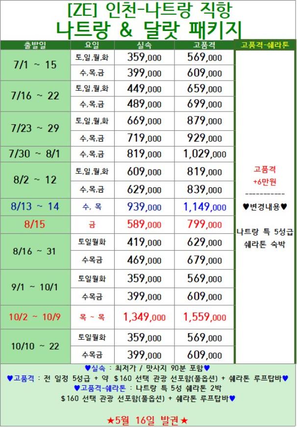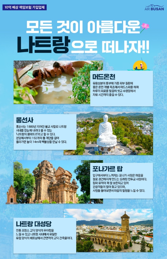 2박 나트랑 + 1박 달랏으로 여유롭게 떠나는 베트남 여행! 인천과 부산, 서울 출발 모두 가능하며, 편리한 직항 항공편으로 부담 없이 떠날 수 있어요.