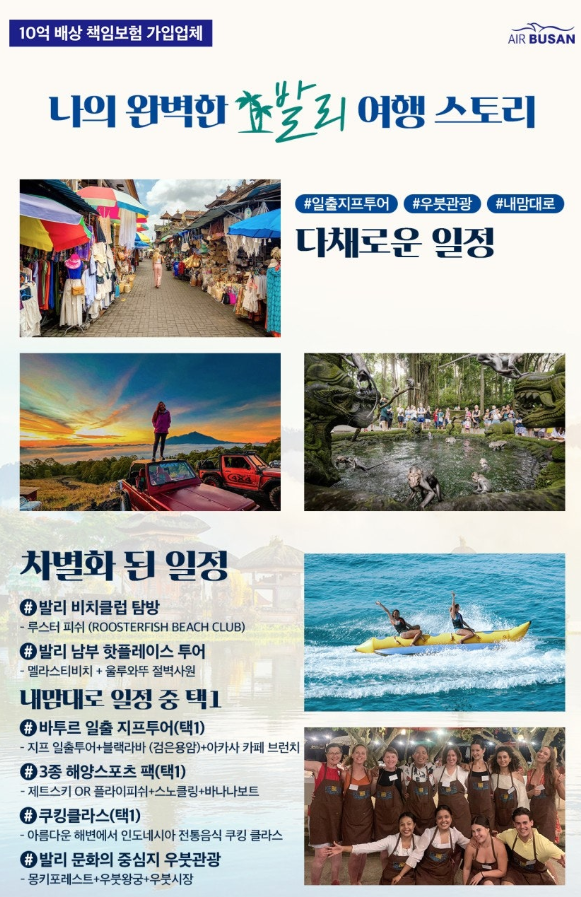 이동: 인천 ⇄ 덴파사르 직항 (제주항공), 전용차량 이동 포함 (자유일정 제외)
