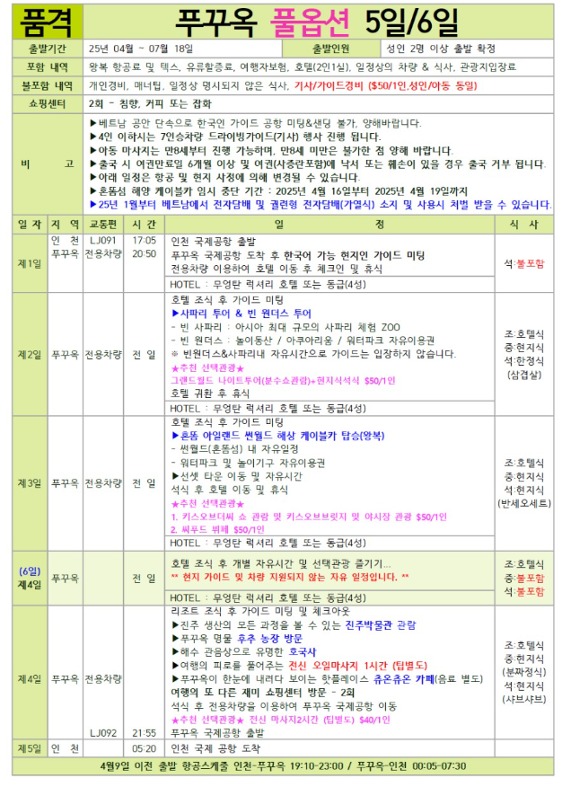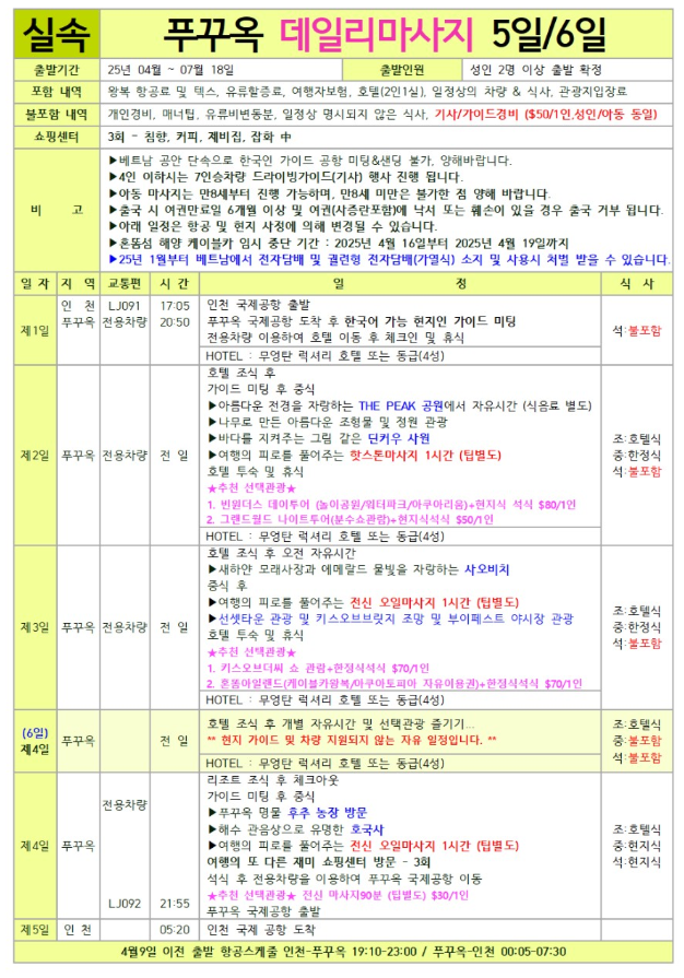 | ์ถ๋ฐ ์์ผ | 3๋ฐ5์ผ(์/๋ชฉ) / 4๋ฐ6์ผ(ํ /์ผ) |