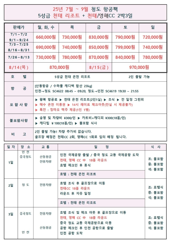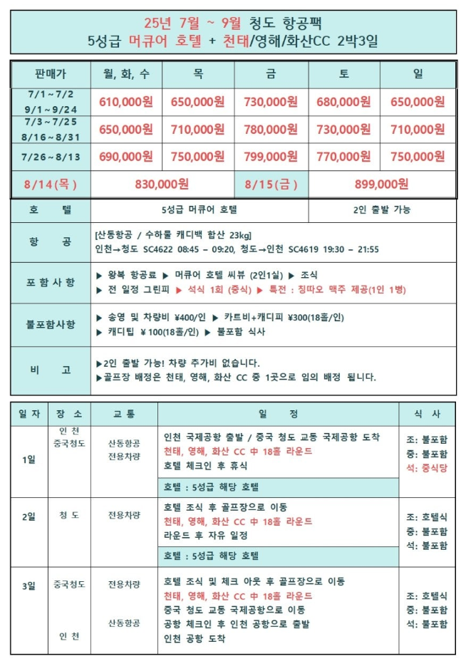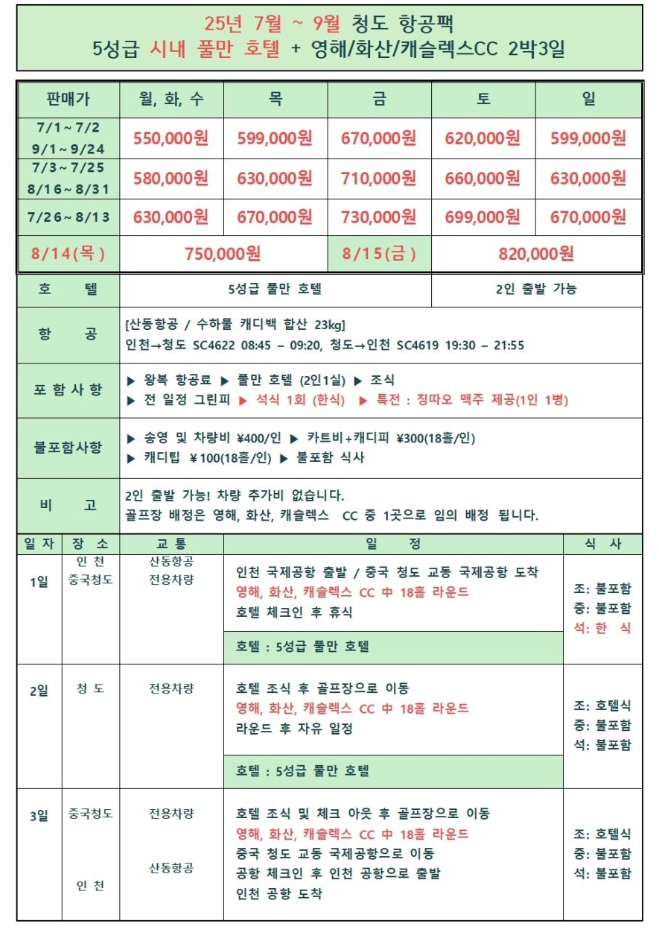 | 7์ ~ 9์ | 2๋ฐ 3์ผ | 560,000์ ~ |