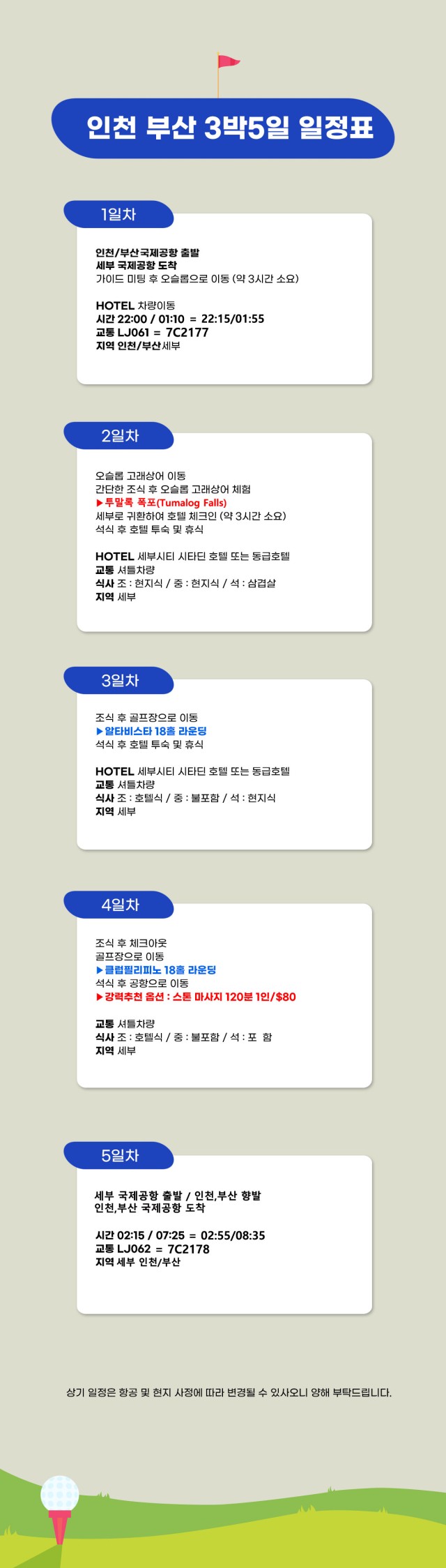 4일차: 골프 1회 + 마사지 옵션 후 공항 이동