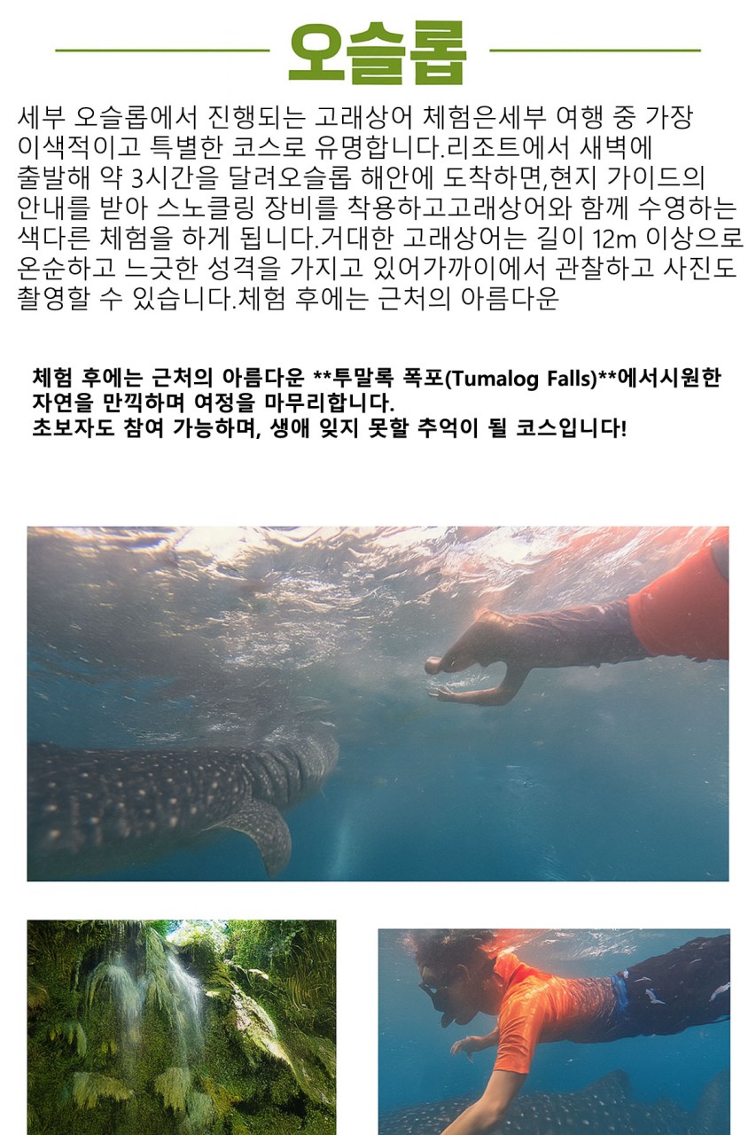오슬롭 고래상어 체험 + 투말록폭포