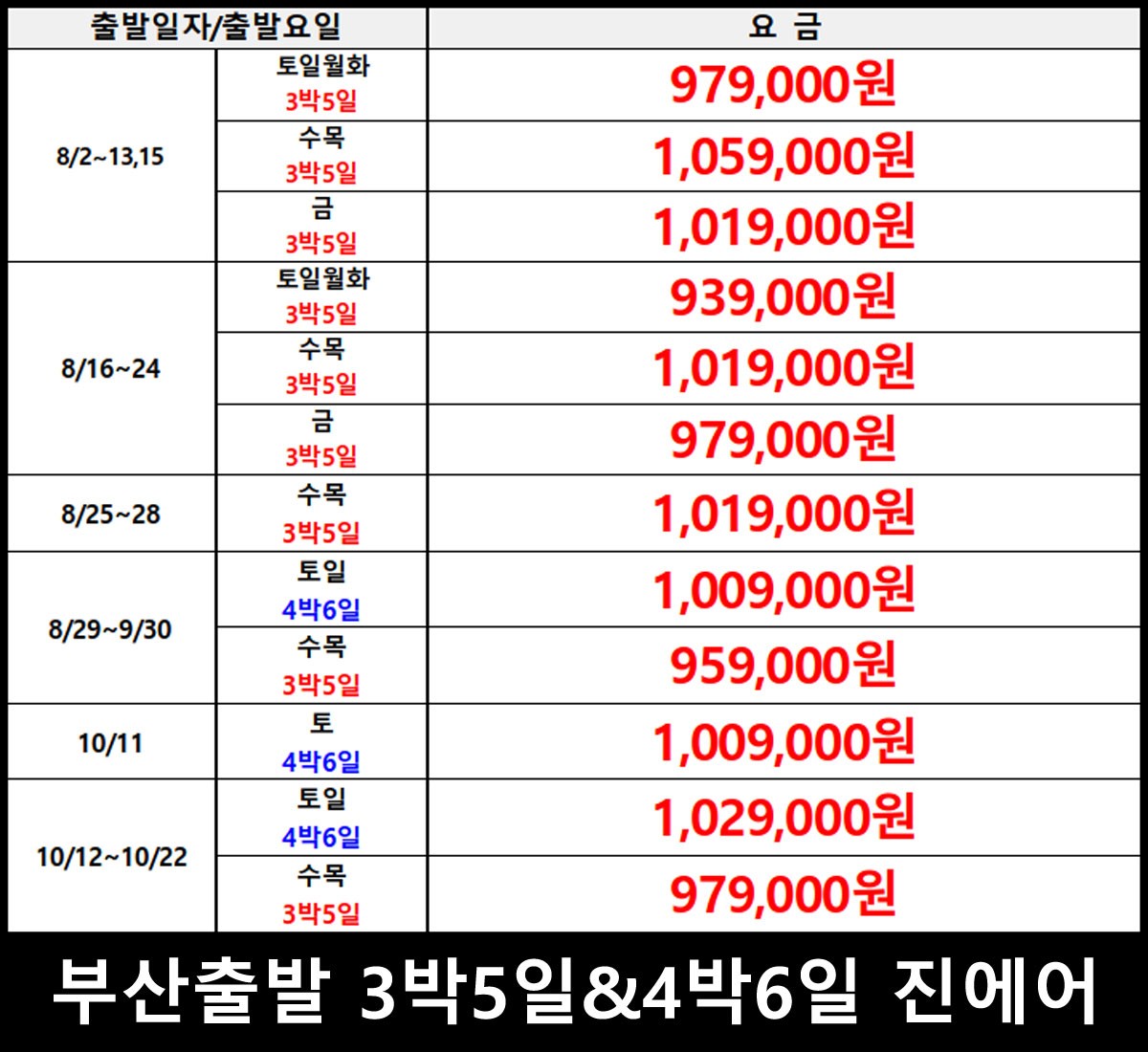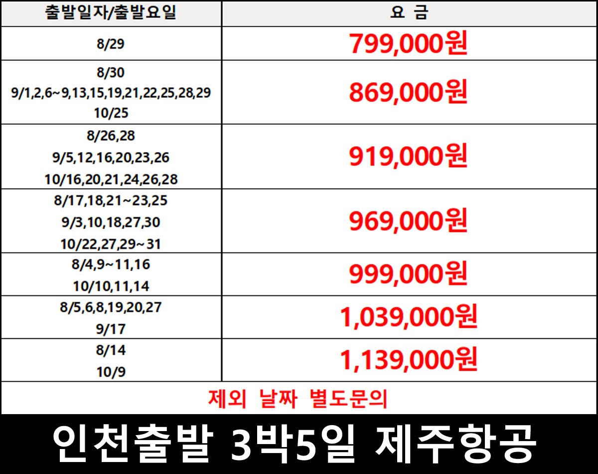 (출발지: 인천 & 부산 / 항공: 제주항공, 진에어)