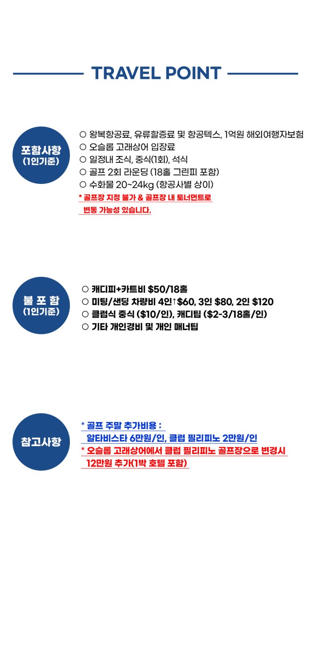 중식, 캐디팁, 개인경비, 마사지 옵션